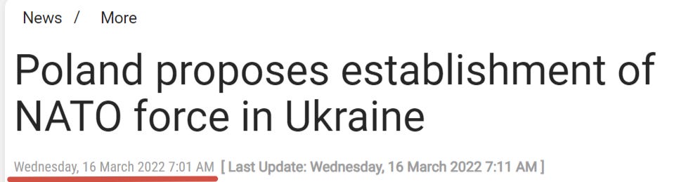 Furthermore, recall that this isn’t a new idea. I’ve written in my earliest articles more than a year ago about how Poland was openly petitioning to send NATO troops into Ukraine literally from the first weeks of the war.