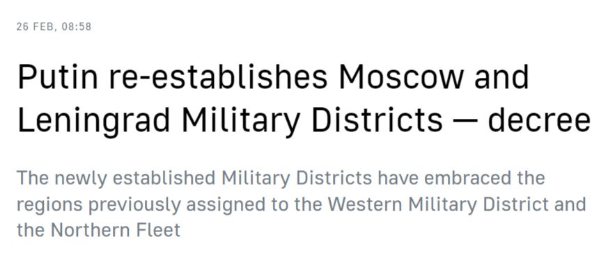 This is why I have been saying from the beginning that Shoigu was extremely wise in his foresight of creating the new military districts and reserve armies of 500k+, precisely to deal with this new NATO threat. Incidentally, just today Putin officially inaugurated those two new districts: