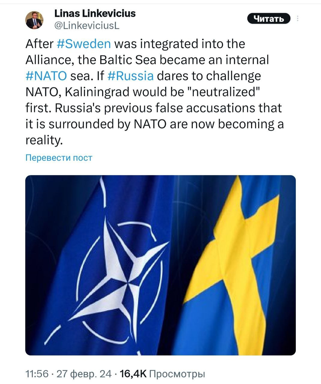 But the saber-rattling from NATO and affiliates continues apace. Lithuanian ambassador Linas Linkevicius went on to threaten Russia with “neutralizing” Kaliningrad: