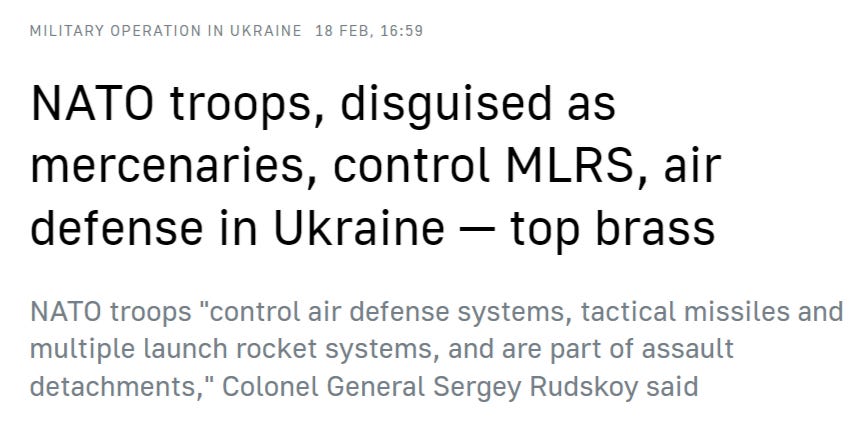 Of course, we all know from the Pentagon leaks that UK, US, and others already have hundreds of spooks and special forces in the country. Recently, Russian Colonel General Rudskoy again confirmed that NATO troops are already in the country under the guise of ‘mercenaries’: