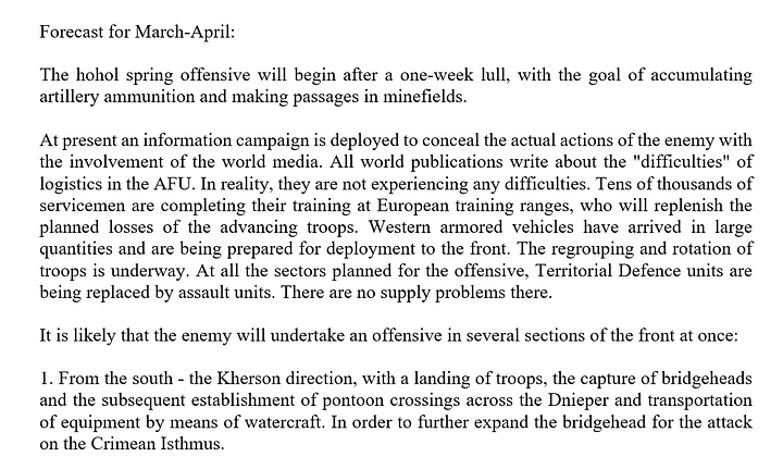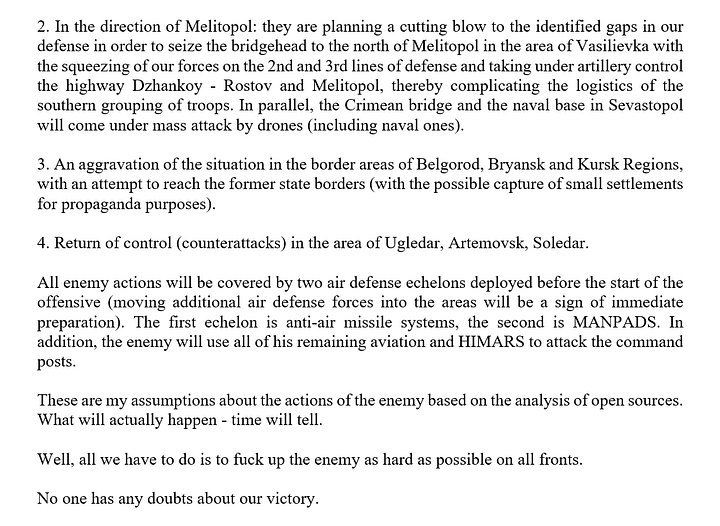 As for the ‘grand southern offensive’ to take place later, here is another interesting post from a top Telegram channel: