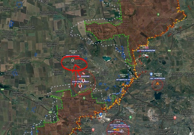 On the northern end of Avdeevka, Russian troops have reportedly crossed, or at least gotten hold of the critical railroad beside Stepove. So as can be seen the Avdeevka situation is getting critical for the AFU and at this rate could very well fall even before Bakhmut.