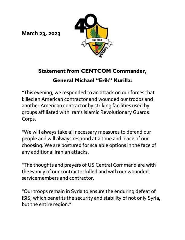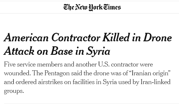 And what’s more, yesterday an Iranian militia strike on a US base has actually caused casualties—the death of a contractor and wounded servicemen: