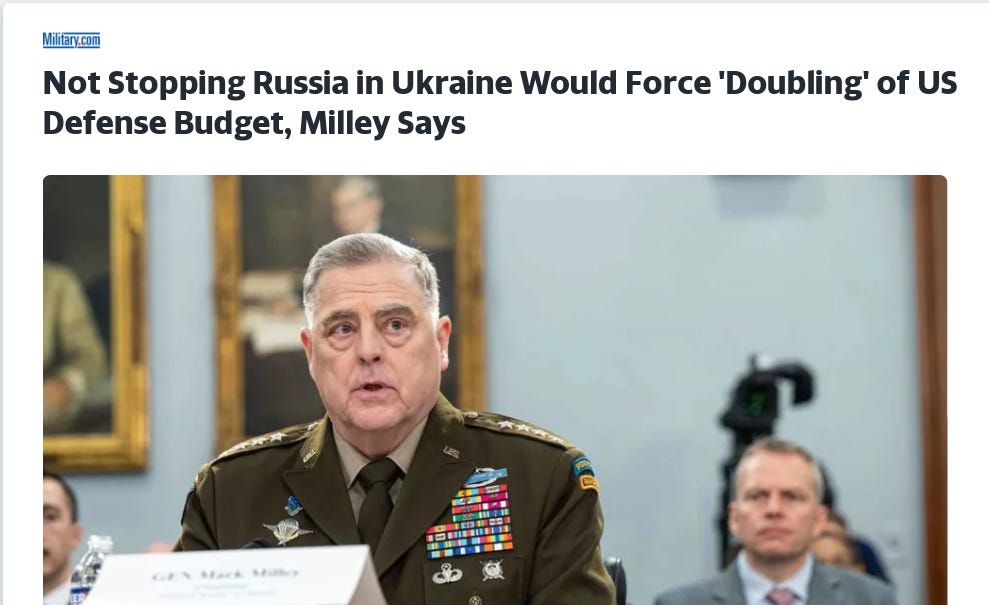 As a last point of humor, General Milley has recently stated, that if Ukraine loses to Russia, it would result in the US military budget having to ‘double’.