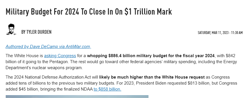 What’s most hilarious about that, is it was recently revealed that Biden has already requested an astonishingly unprecedented, near $1 trillion defense budget from Congress: