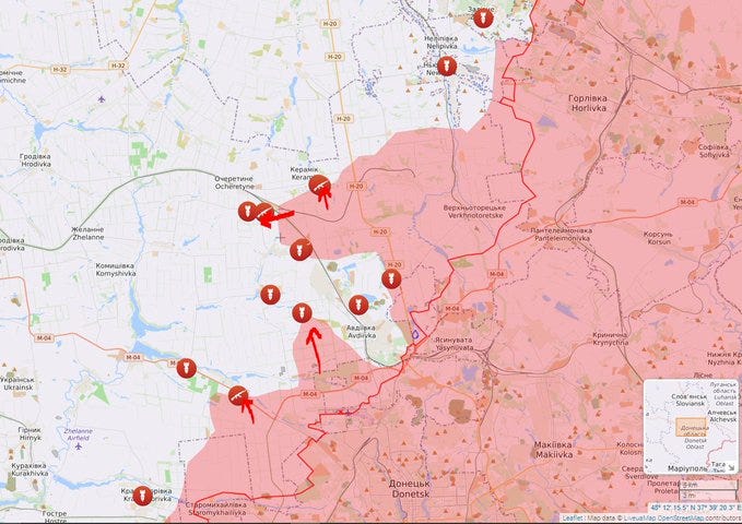 Now let’s turn briefly to the other front of Avdeevka. Some reports today (including from the AFU side, which lends further credibility) claim that Russian forces have struck a deep breakthrough advance into Avdeevka’s western flank.