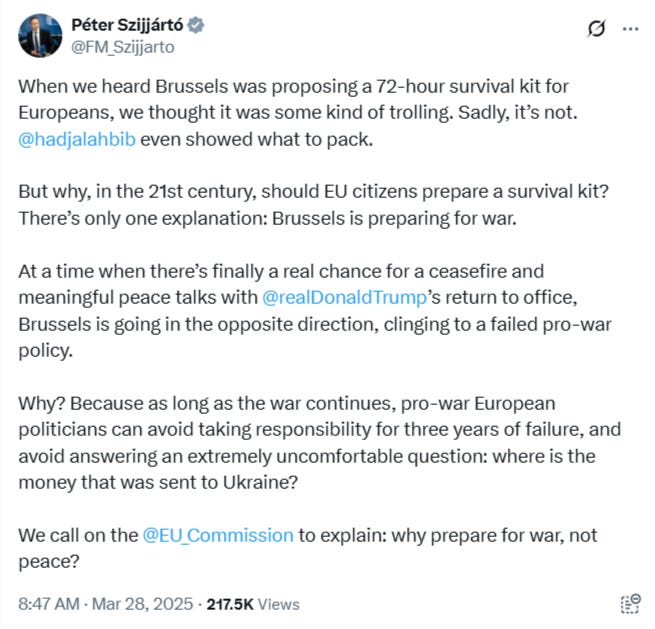 As part of its campaign to drum up war fears against Russia, the EU is beginning to roll out a series of cringe-worthy ads urging the population to put together “survival bags” in case of war with Russia: