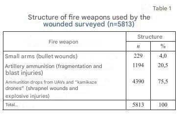 Another 20% of the soldiers surveyed were injured as a result of artillery shelling, only 4% from small arms.