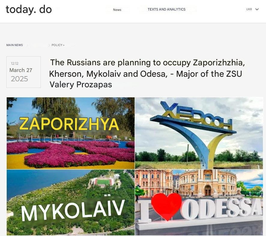 The Russian Federation plans to "occupy" Zaporizhia, Kherson, Nikolaev and Odessa, - Major of the Armed Forces of Ukraine Valeriy Prozapas