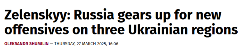 Quote: "According to our intelligence, Russia is getting ready for new offensives against the Sumy, Kharkiv and Zaporizhzhia oblasts. They're dragging out the talks and trying to get the US stuck in endless, pointless discussions about fake 'conditions' just to buy time and then try to grab more land."