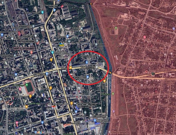 The above map shows where fighting is being reported, which is already on the ‘western’ portion of the city across the Bakhmutovka River. For now there were rumors it is merely Russian ‘DRG’ (forward sabotage/spotters), but it hasn’t been fully confirmed yet.