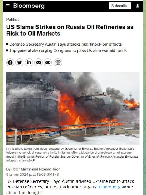 And on the note of congressional antics, a big uproar ensued in the Ukrainian commentariat after it was finally revealed definitively by Biden’s administration that they apparently do not support Ukraine hitting Russia’s oil and gas infrastructure due to the fear of affecting “global energy markets”: