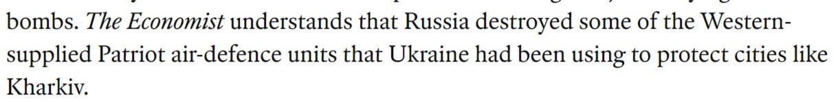 They appear to further admit that Russia has destroyed Patriot systems guarding Kharkov: