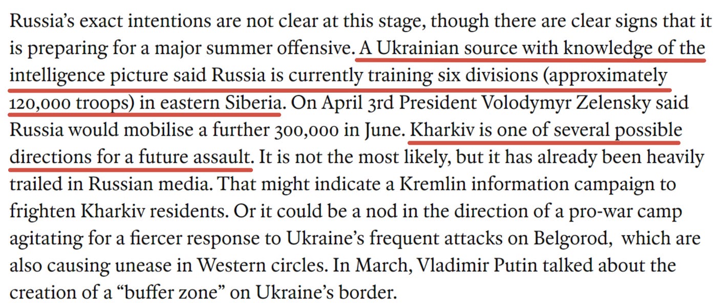 So: according to them Russia is preparing for a ‘major summer offensive’ and is training a massive two-corps field army of six divisions in ‘eastern Siberia’, according to a high-ranking Ukrainian official.