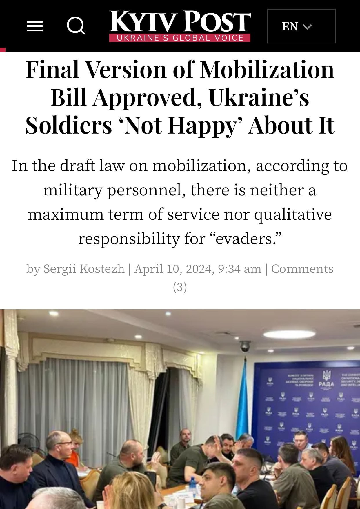 There has been such a tumult and controversy that it would take a separate article to enumerate it all. But the biggest sticking point was in regard to the removal of a provision that allowed Ukrainian servicemen to be demobilized after 3 years of fighting. Now, it appears, mobilization is ‘permanent’—i.e. until death.