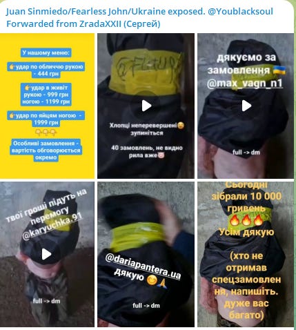 2.) Ukrainian soldiers have started a new venture where you can even pay to torture a captured POW. Different rates can purchase varying degrees of torture. How innovative!