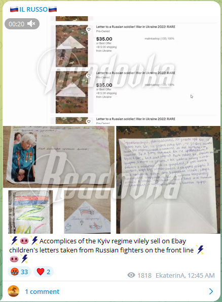 AFU ghouls are now selling personal letters from the children of deceased Russian servicemen as ‘souvenirs’ online:
