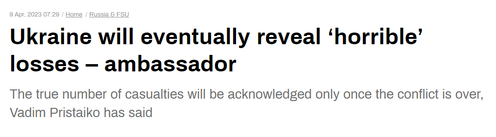 Ukraine’s ambassador to the UK gave us insight into this a few days ago when he said that for now the AFU’s losses are state secret, but one day they will be revealed and they will be a “horrible number”.