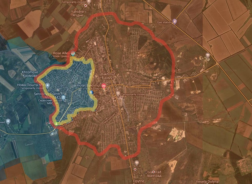 And here’s just a plain map of the full city without the clutter, where it’s clearly visible how much Russia controls compared to the AFU: