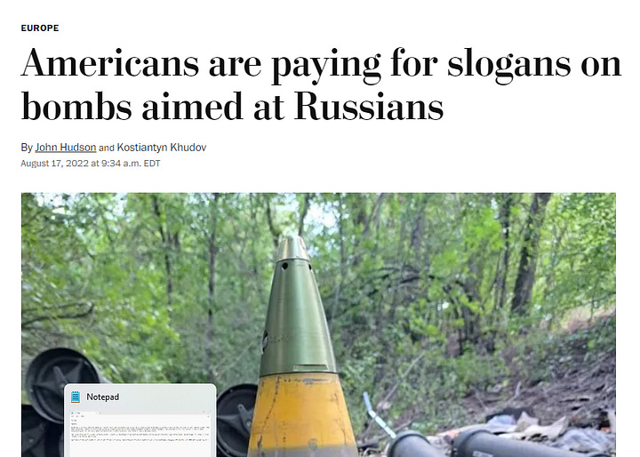 "You have a chance to kill orcs with your text on 82mm artillery grenade that will be fired at Russian soldiers," reads one of Sokolenko's promotional posts. (Orc is a common Ukrainian insult for Russian soldiers.)