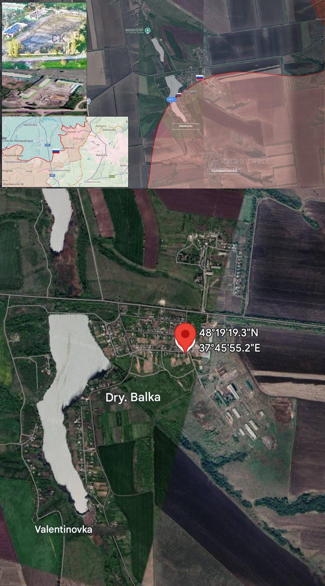 The largest gains by far of the past week have come about in the southern Konstantinovka area. The cap came today when Russian forces captured Sukha Balka, seen in this video gelocated at 48.3220217, 37.7653219: