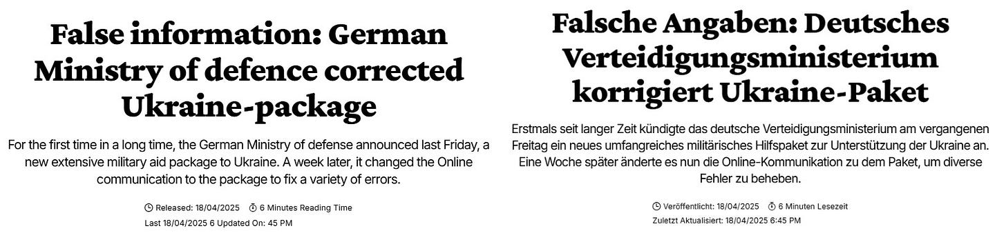 Lastly, Germany proudly announced a new powerful military package to Ukraine days ago. But already they are heavily backtracking, with much of the aid now reduced or postponed, as described here.