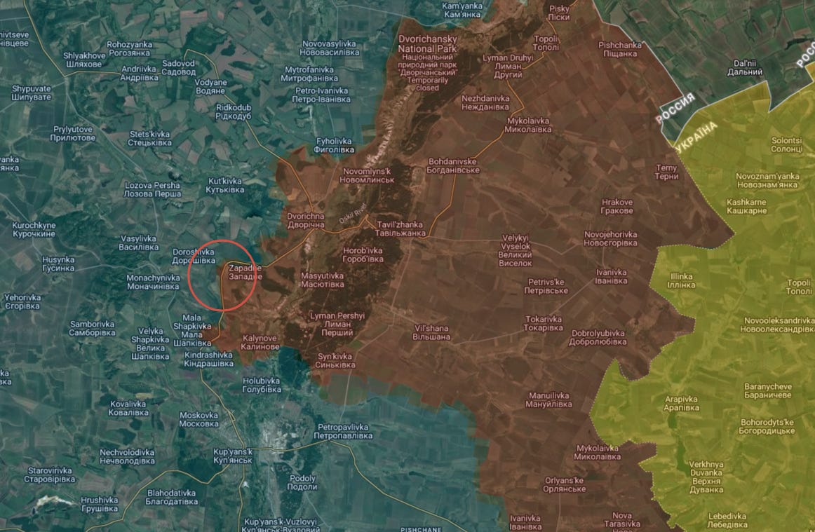 In Kupyansk Russian forces took new positions on the ‘beachhead’ across the Oskil river around here: