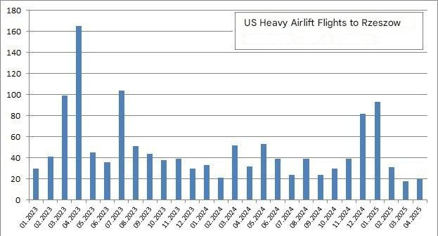 If we exclude these anomalies, then on average 35 such flights arrived in Rzeszow per month in 2023-2024. And in February-April 2025, despite a week-long pause in March, there will be an average of 25 flights per month. Over the 19 days of April, 20 flights have already arrived.
