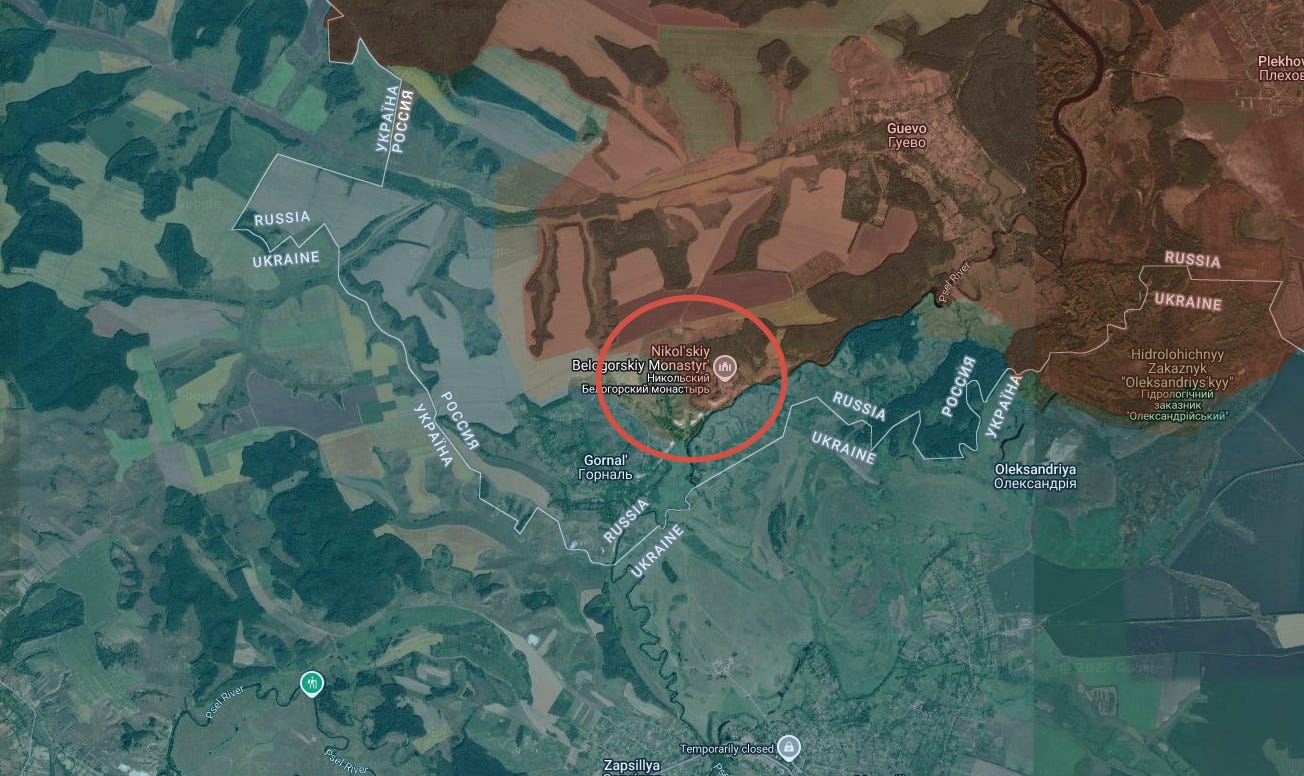 The other big capture was the Gornal monastery in the Kursk region, which is virtually the last holdout of Ukrainian forces on Kursk territory: