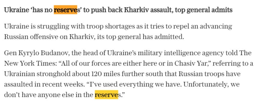 First, he states frankly that Ukraine has no reserves left for Kharkov: