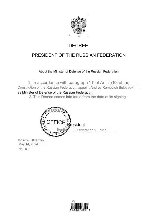 Putin has sealed his new government, with Belousov given his first marching orders.