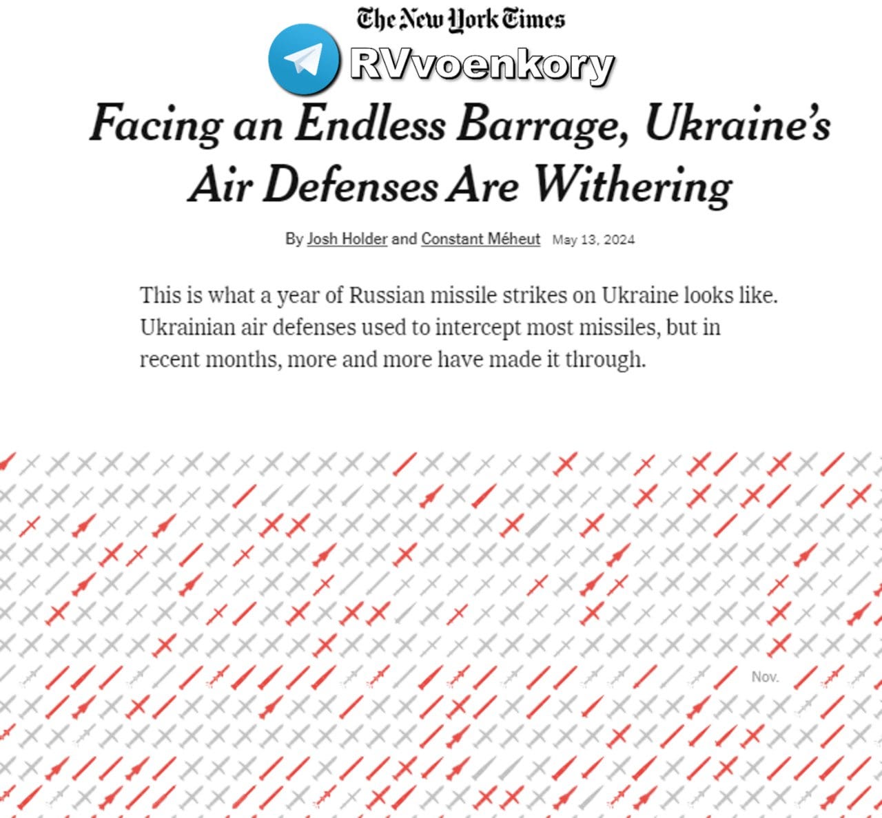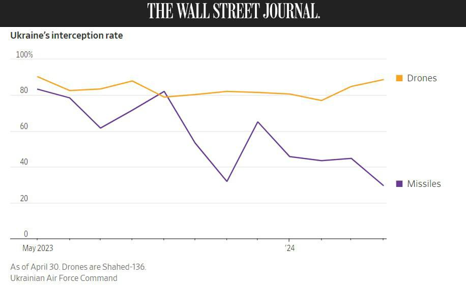 One of them even includes this handy chart for the alleged drop in Ukrainian interception rates of Russian missiles: