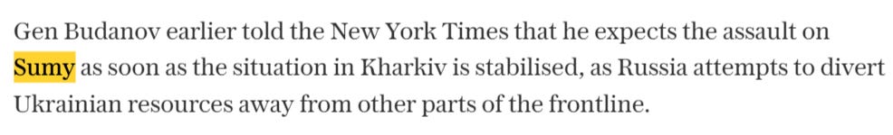But if that wasn’t bad enough, Budanov further admits that Russia will start the long-awaited Sumy operation within days: