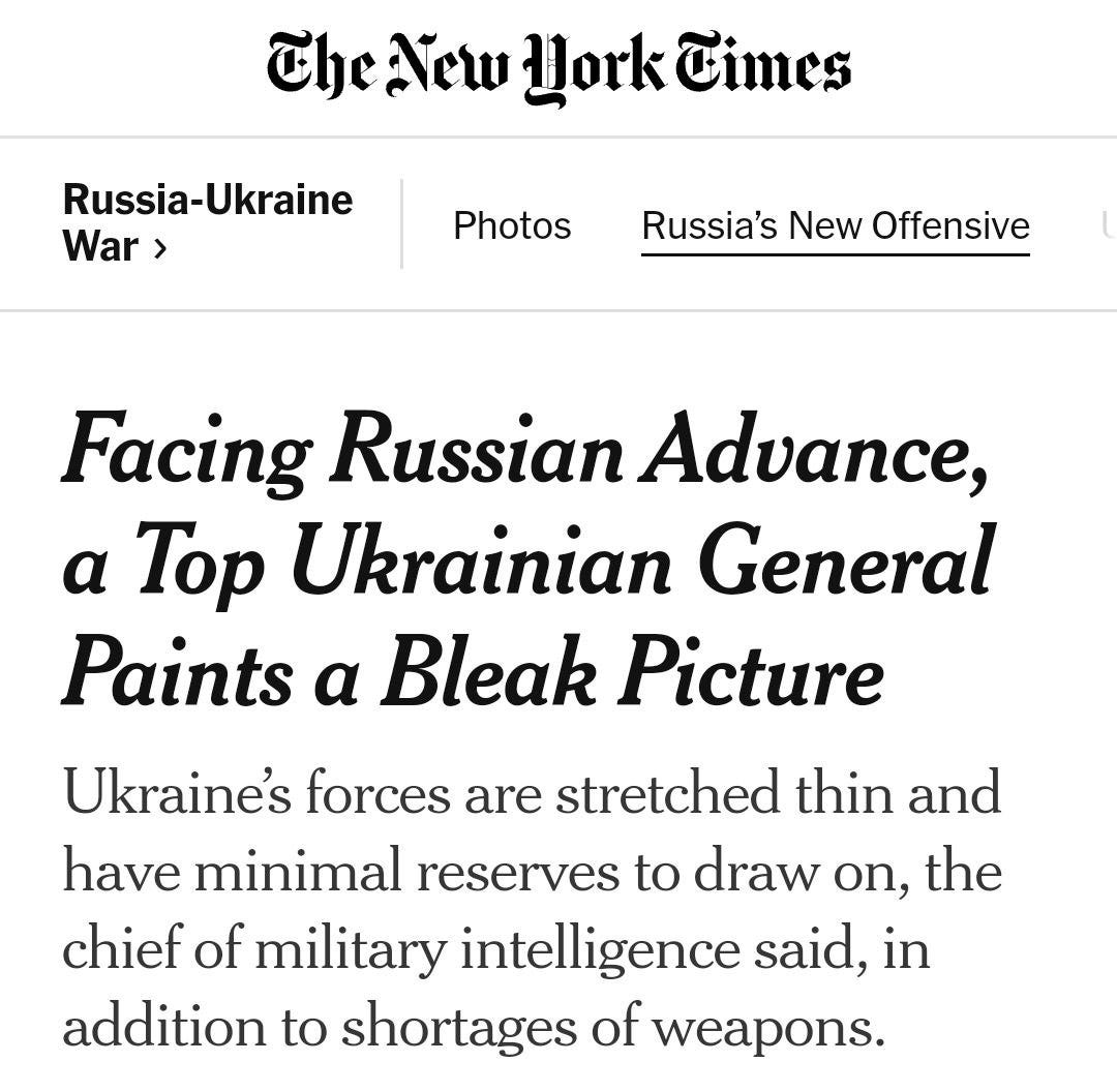 Ukraine’s military intelligence chief Budanov admitted to the New York Times that the situation is bad: