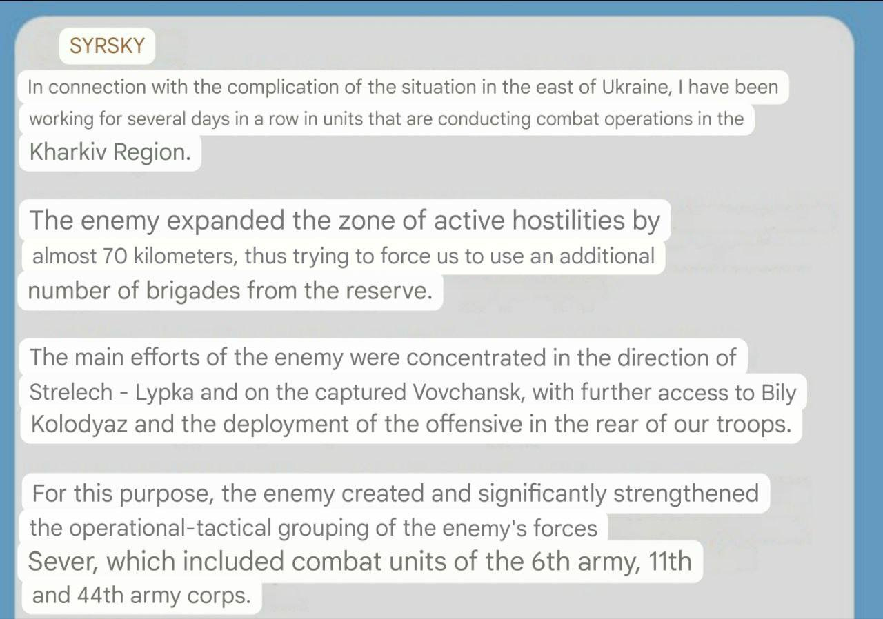 Syrsky himself commented, in the process confirming some of the new Russian units activated in this region: