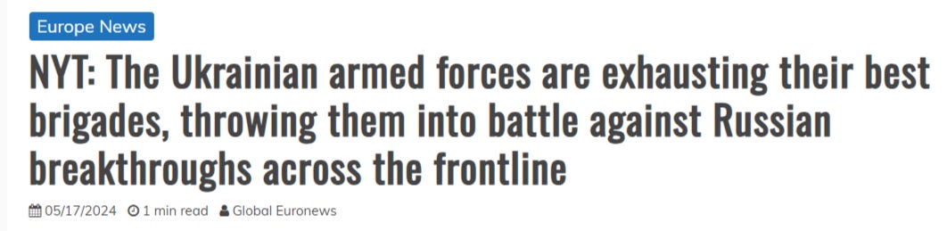 Interestingly, in the new NYTimes Oped by Rob Lee and Michael Kofman, they openly admit the latest tactic is exhausting Ukraine’s best brigades for precisely the reason I’ve outlined for months—they are being whisked willy-nilly to and fro to plug gaps because Russian logistics agility is superior: