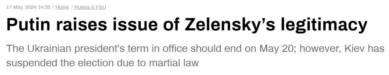 The problem is, Putin has now confirmed our theories and openly expressed the idea that Zelensky’s legitimacy is a problem for Russia to negotiate with. Watch the end of this video: