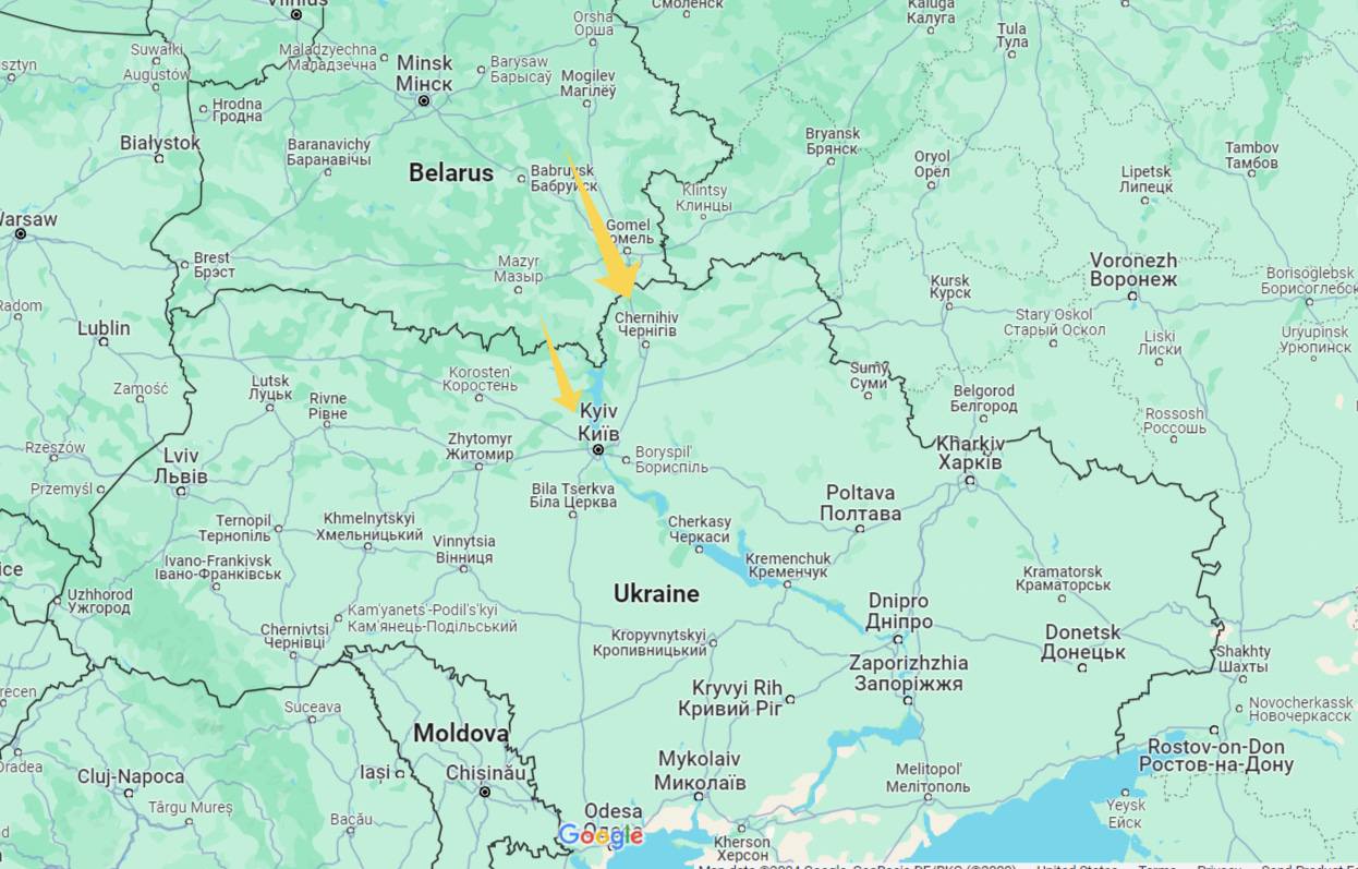 Recall that the only two real cities Russia could possibly use Belarus as a staging area and springboard for are either Kiev or Chernigov: