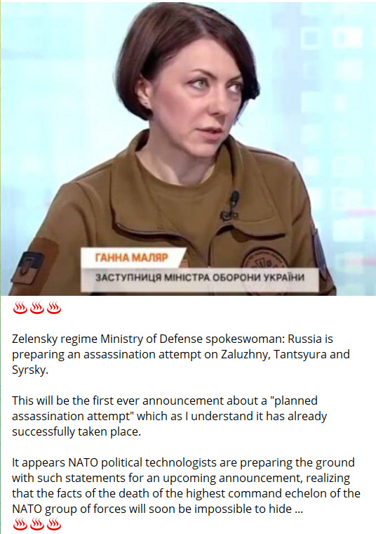 I added an update to the article that reportedly a Ukrainian MOD spokesman has just stated that Russia is planning an 'assassination attempt on Zaluzhny'. I haven't been able to verify this statement yet, but if it's true then it appears Zaluzhny truly is kaput and they're ready to pull the plug on him soon and blame Russia, and are merely preparing the public for the news: