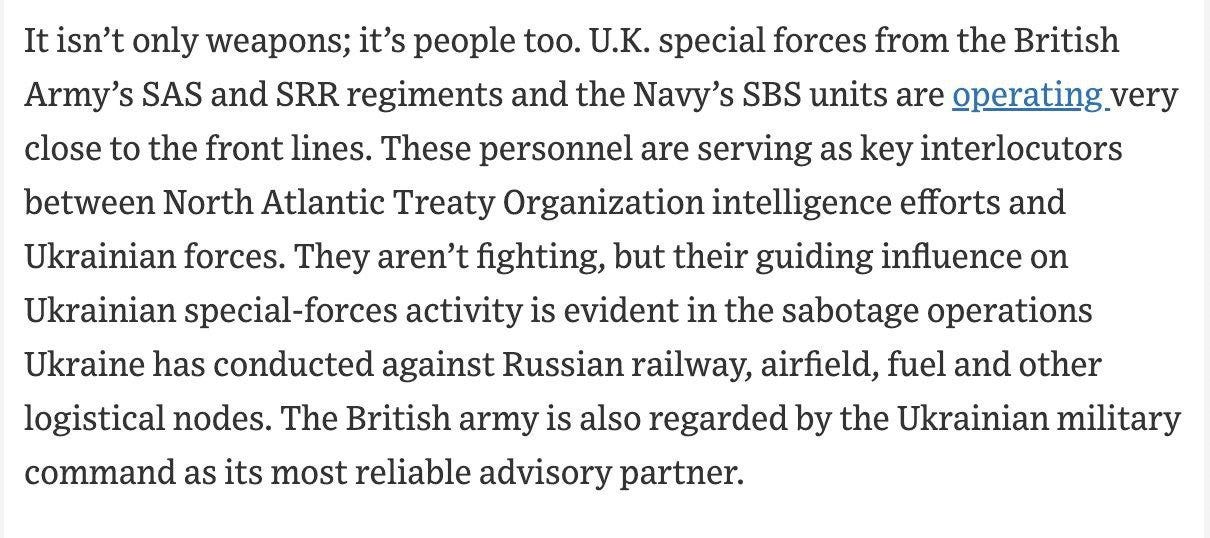 A new Wallstreet Journal article revealed that British SAS are operating ‘very close to the front lines’: