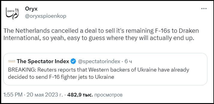 Secondly, in the Pentagon leaks, on the pages that showed all the new Western-trained brigades, for those who’ve seen it, they had given timelines for the readiness of each brigade in the various categories like when training would be completed, when the equipment deliveries would be completed, etc. Everything was said to have been completed by end of April at the latest, though we know recently Zelensky has complained that he still doesn’t have enough arms. But this likely has more to do with the fact that Russia has been destroying all of these arms in their warehouses in major strikes for the past month. But late May was also the time given by various sources as the final ending of mud season and the point at which there could no longer be meteorological excuses for the AFU.