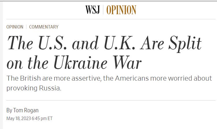 But the broader bent of the article was about how UK/US are at odds regarding the war: