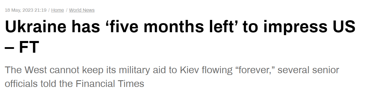 The problem is, it appears Ukraine is being heavily pressured into this offensive, when internally they all know that the results will be catastrophic. Ukrainian ambassador to UK intimated as such yesterday: