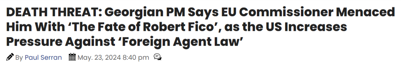 More and more the Atlanticist cabal of the EU and DC-controlled West are demonstrating just how totalitarian and undemocratic they’ve become. Yesterday a quite revealing story surfaced from the current Georgian prime minister Irakli Kobakhidze about how he was essentially threatened with assassination by EU commissioner Olivér Várhelyi for his perceived ‘pro-Russian’ foreign agent law.