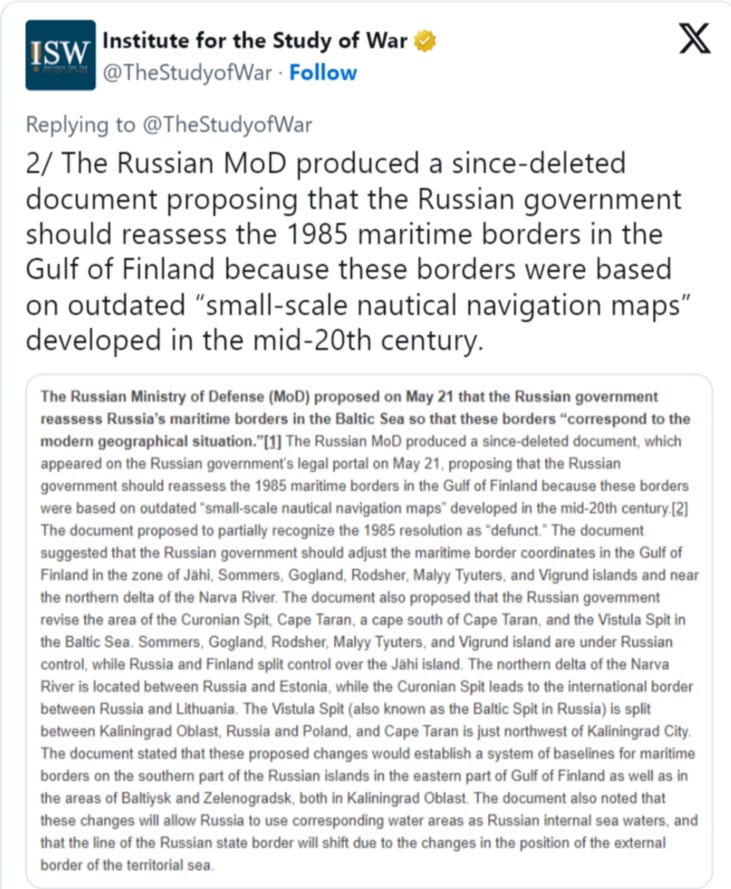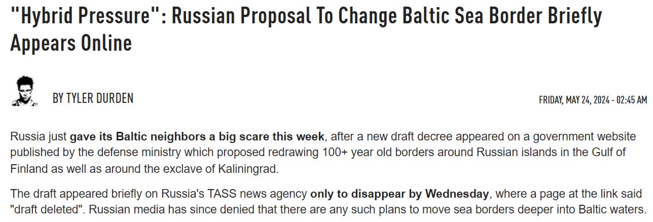 While Russian MOD reportedly proposed moving Russia’s border within the Baltic Sea: