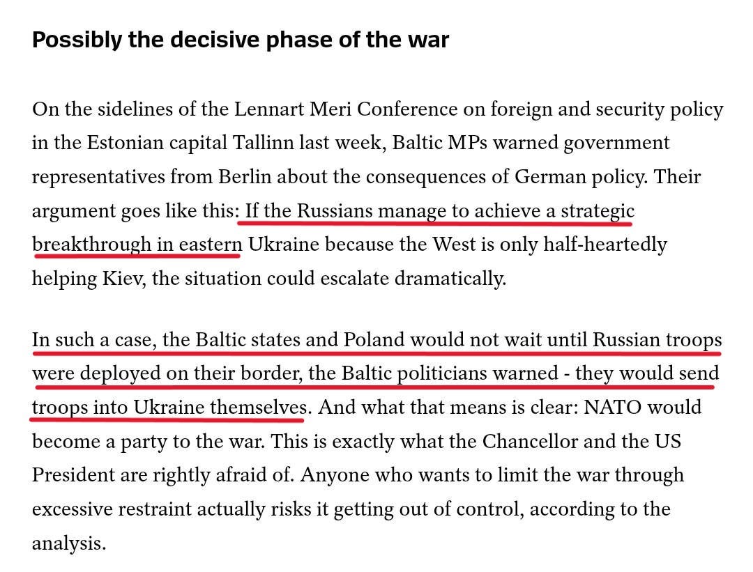 Meanwhile, Der Spiegel writes that the Baltics and Poland “will not wait” for Russian troops to be “deployed on their border” and would send troops to Ukraine if Russian forces achieve a major breakthrough: