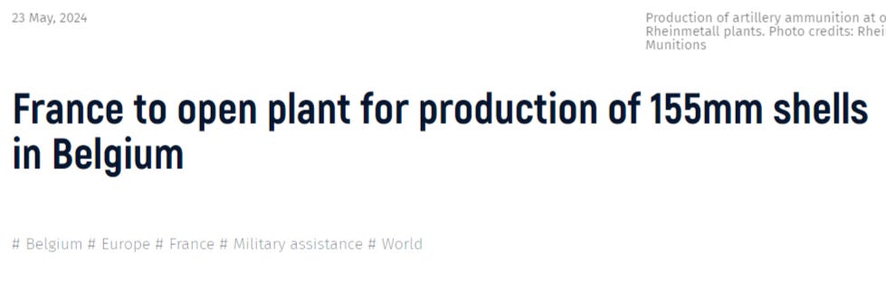 The West, however, claims to be steadily building up their productive capacities. A new Ukrainian report alleges that France is building a new 155mm shell plant in Belgium, which will be completed soon: