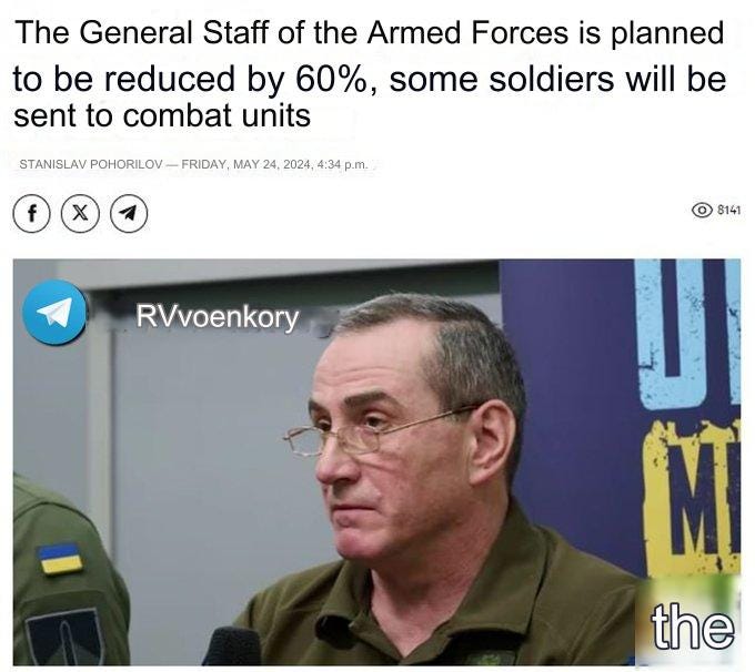 As well as the reported announcement that the Ukrainian general staff would be ‘scaled down’ by 60%, with many sent to the front: