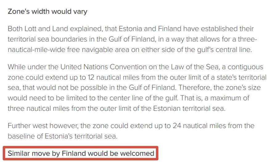Well, two can play the game of cheap theater. Plus, if true, the above is likely a preemptive prophylactic against a move the Baltics had already threatened for a while since the start of the SMO: to play ‘games’ with their EEZs (Economic Exclusivity Zones) by widening them in the Gulf of Finland and elsewhere to prevent the Russian fleet’s ability to make passage of any kind.