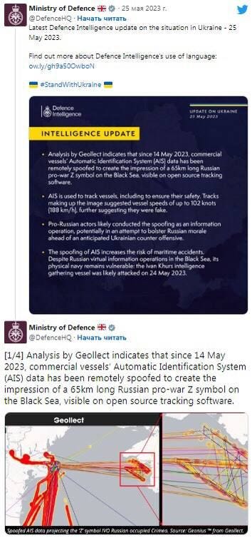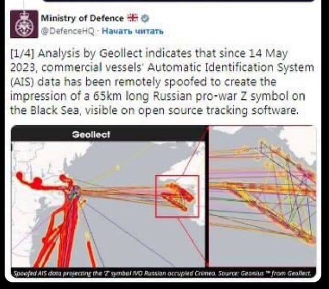 UK MOD complained that advanced Russian EW jamming has spoofed ship traffic data in the Black Sea, creating a giant Z symbol on the global open source tracking map: